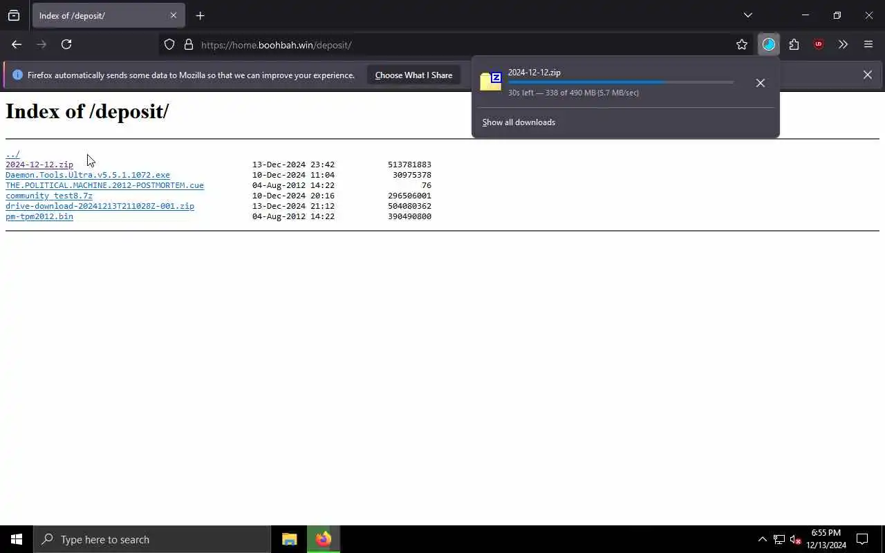 This directory is also accessable using WebDAV, which means you can mount it in Windows Explorer!
