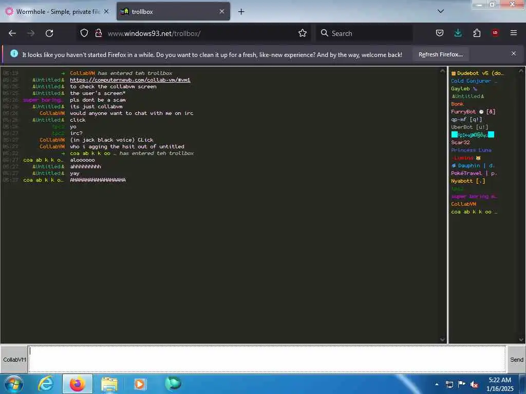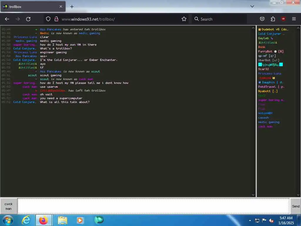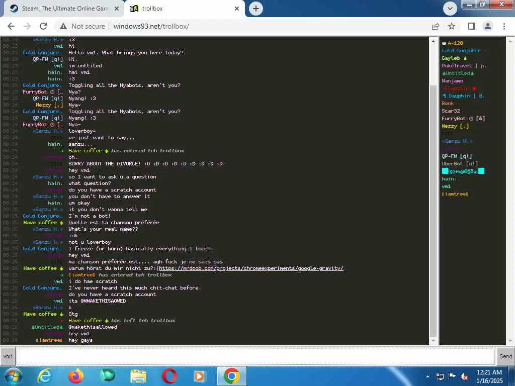 These screenshots are took every minute. (And the script taking them doesn't maintain a connection, apologies for the users that instantly leave every minute)