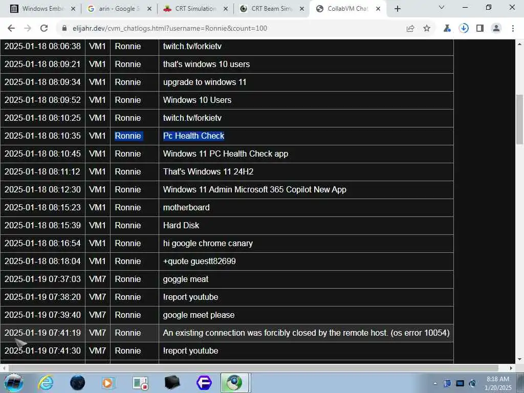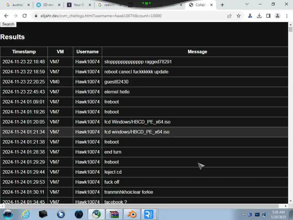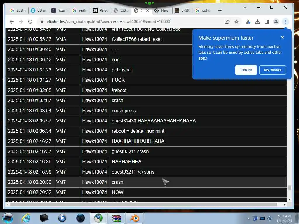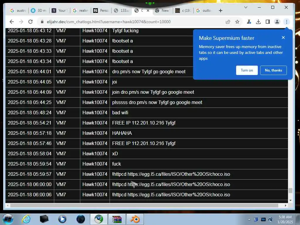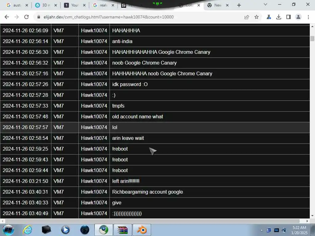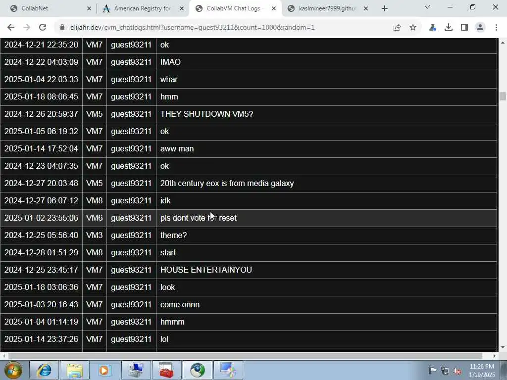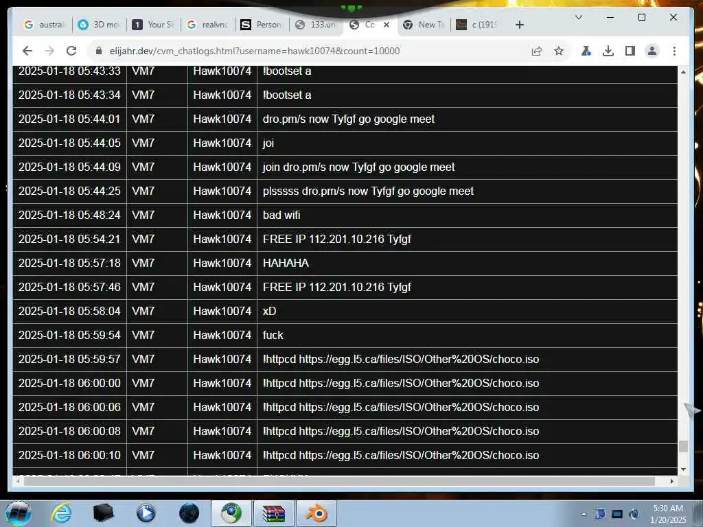 These screenshots are took every minute. (And the script taking them doesn't maintain a connection, apologies for the users that instantly leave every minute)