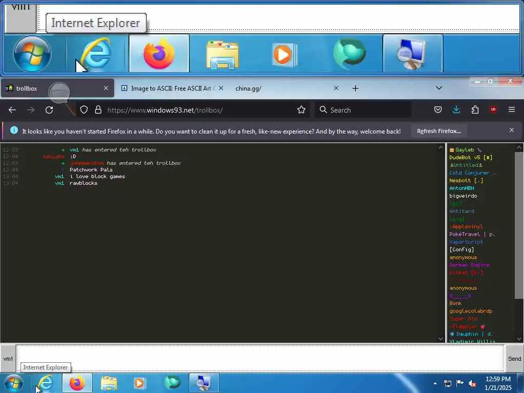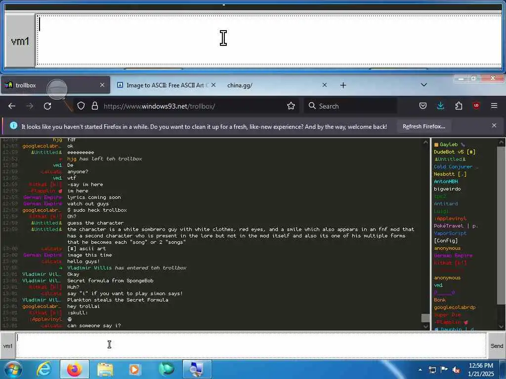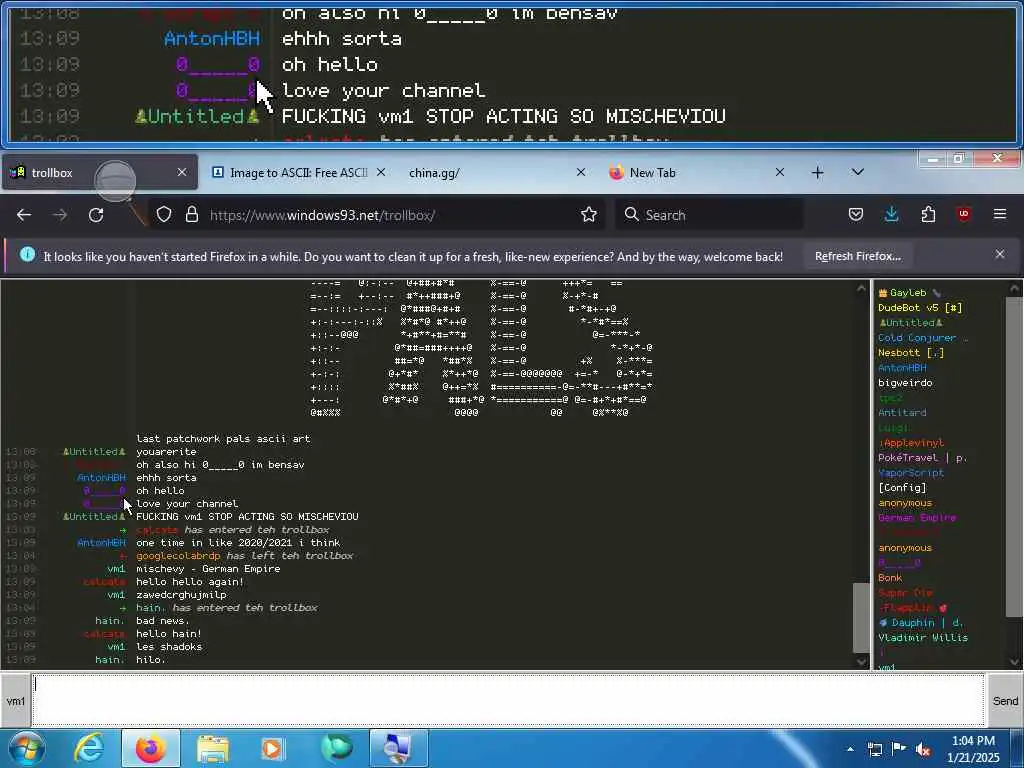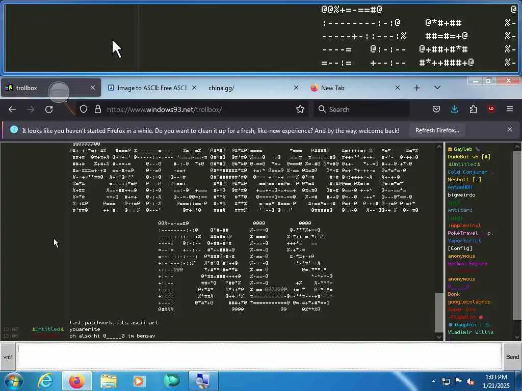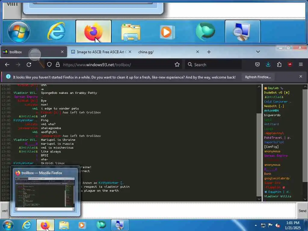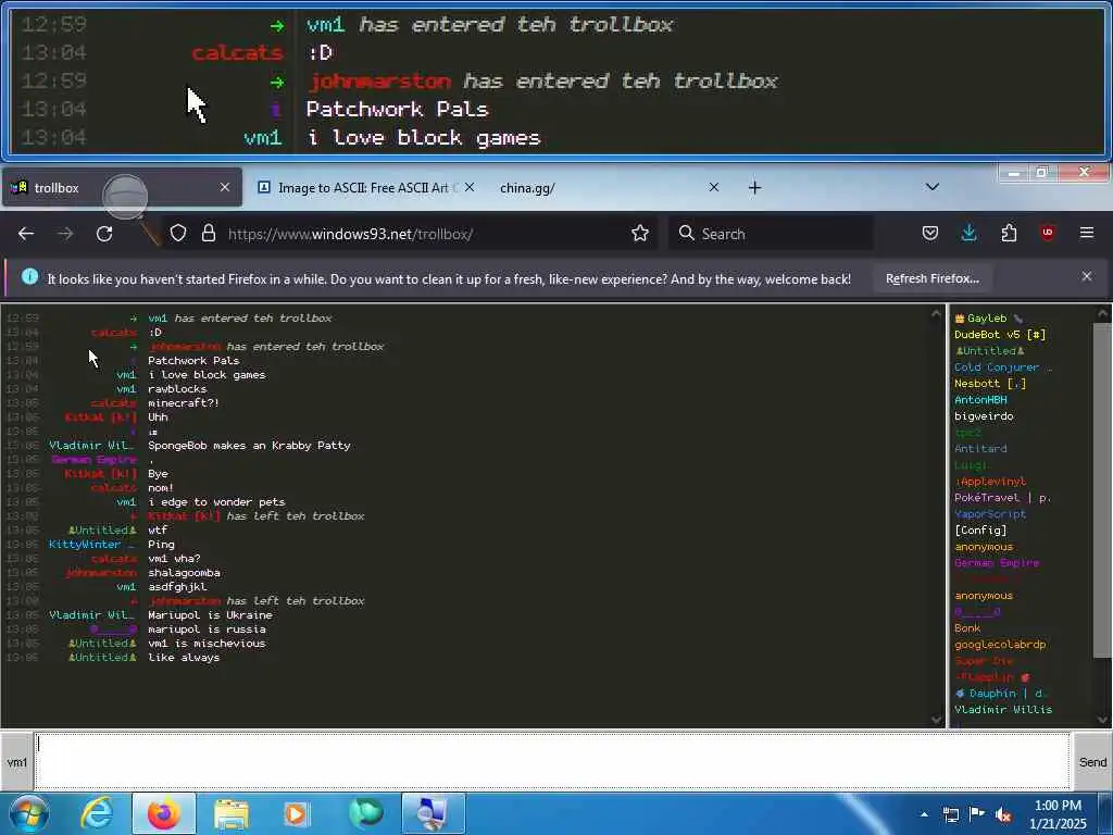 These screenshots are took every minute. (And the script taking them doesn't maintain a connection, apologies for the users that instantly leave every minute)
