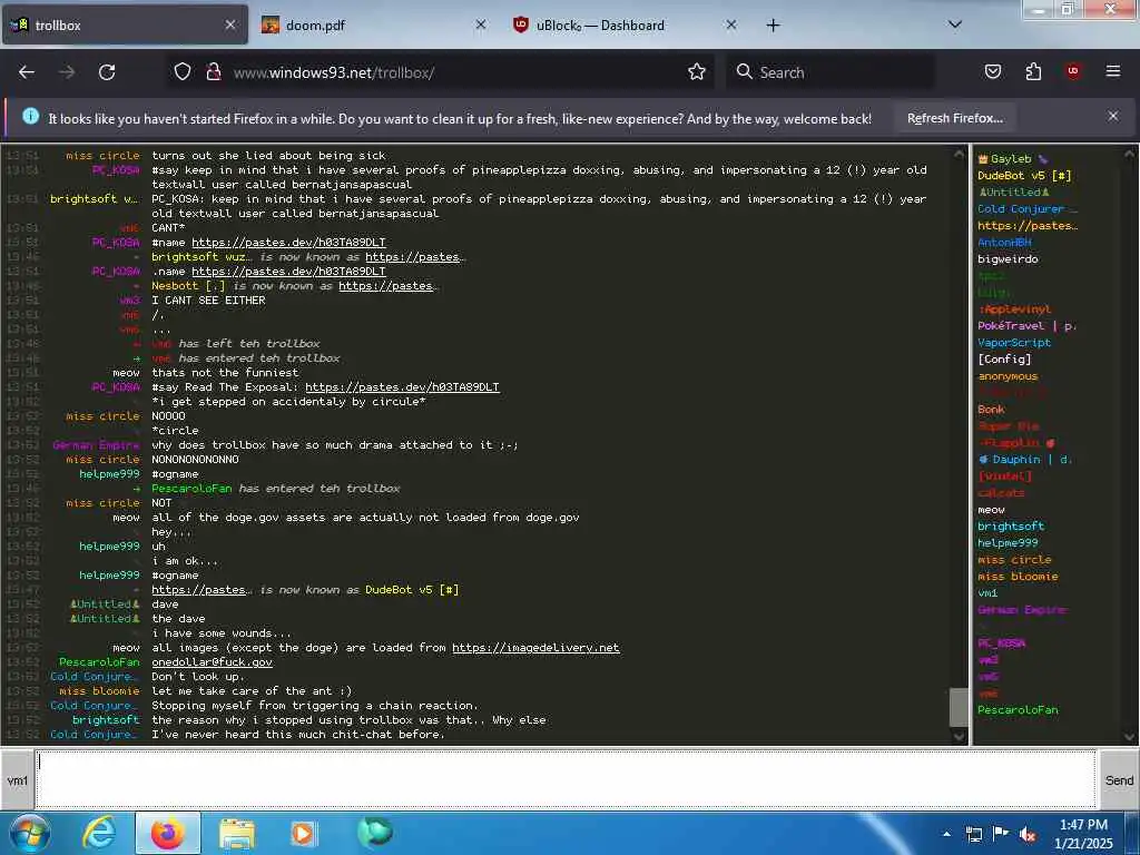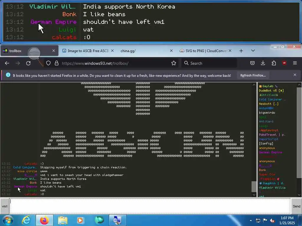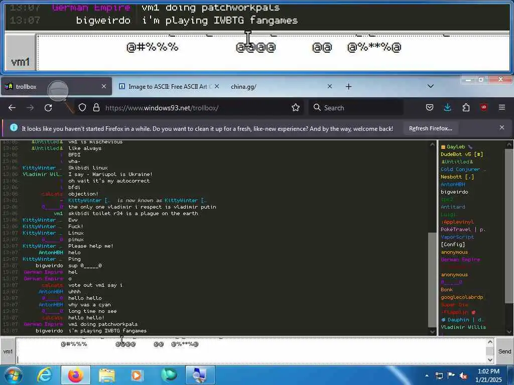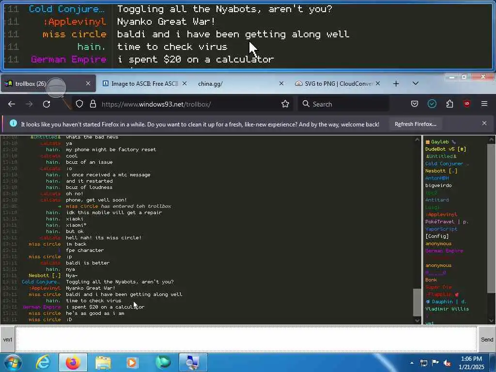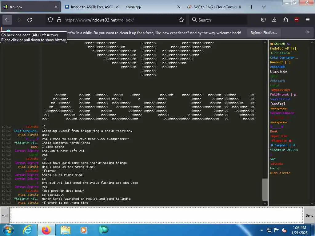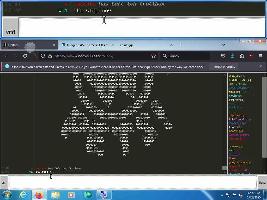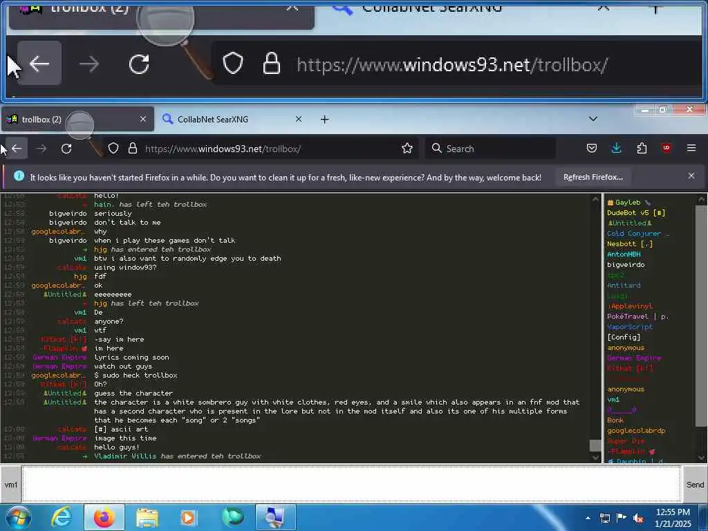 These screenshots are took every minute. (And the script taking them doesn't maintain a connection, apologies for the users that instantly leave every minute)