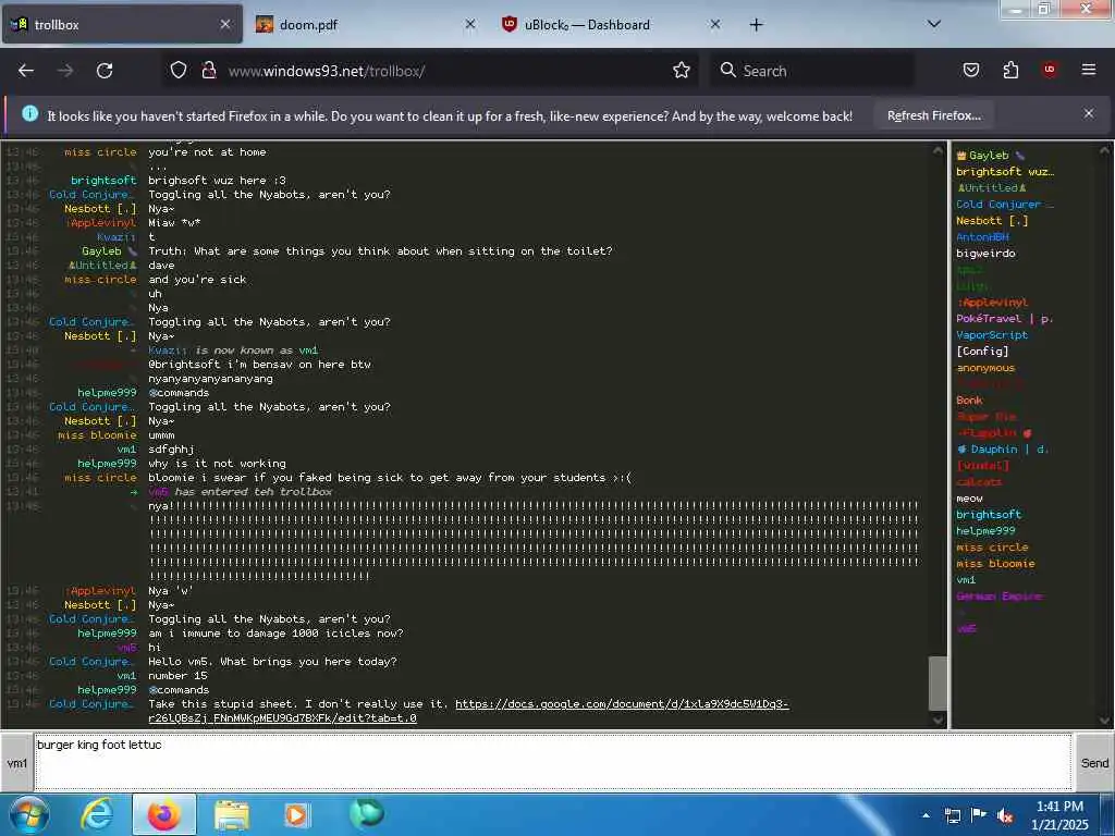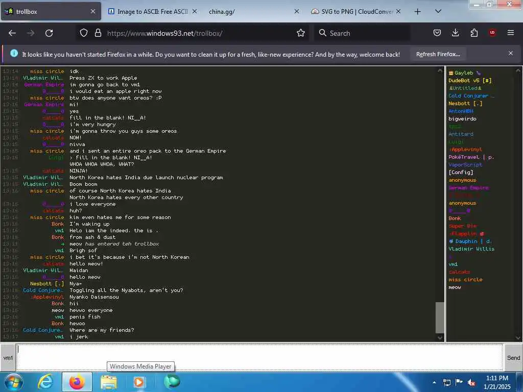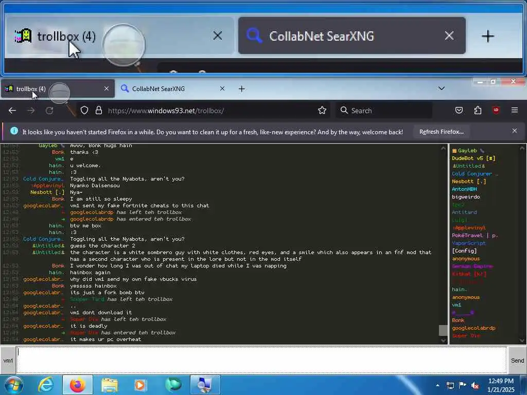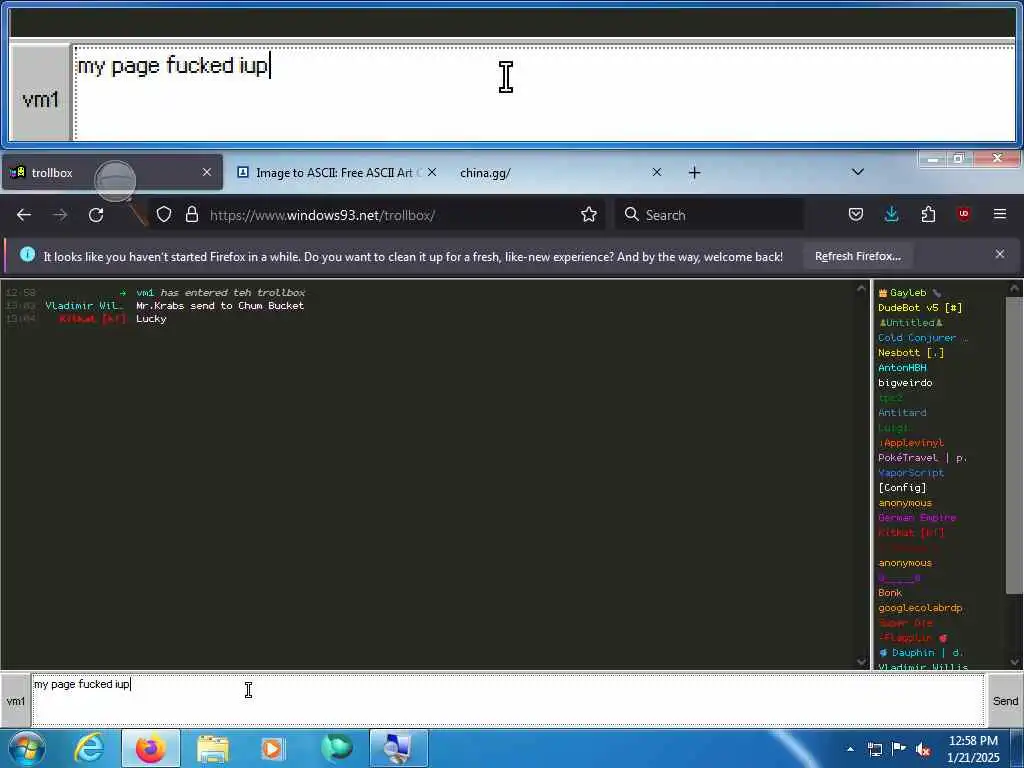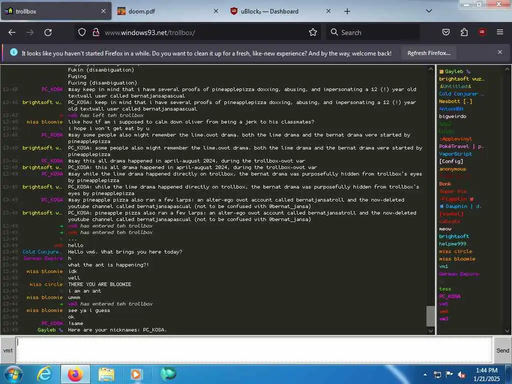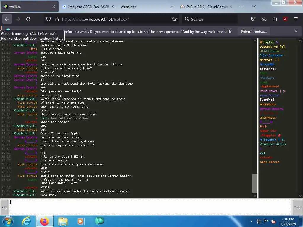 These screenshots are took every minute. (And the script taking them doesn't maintain a connection, apologies for the users that instantly leave every minute)