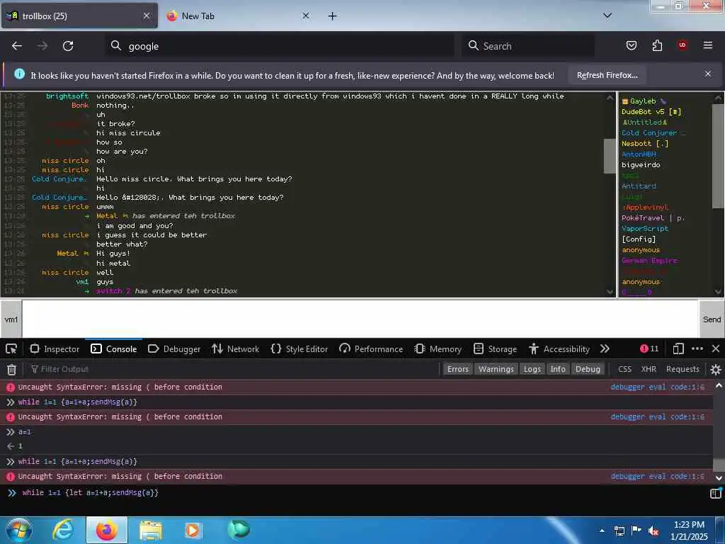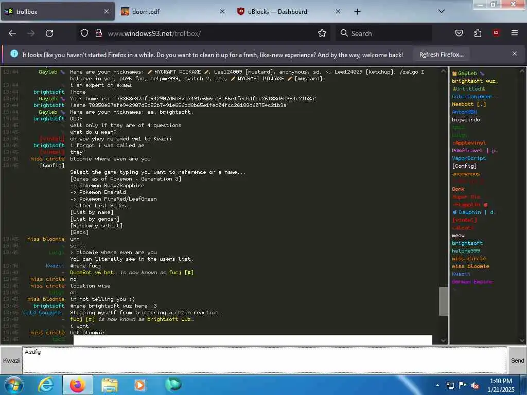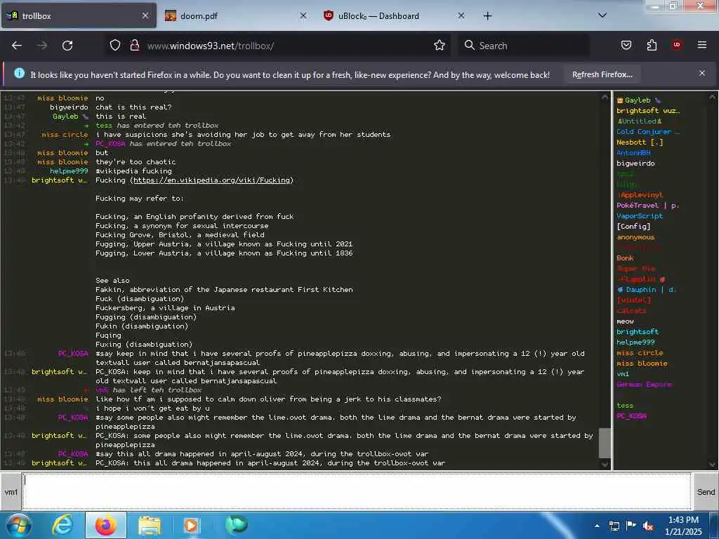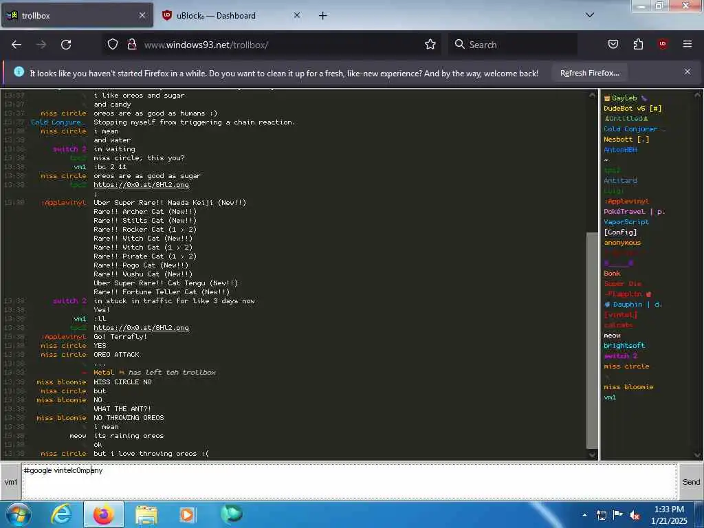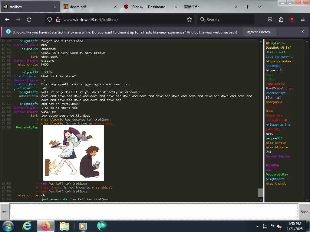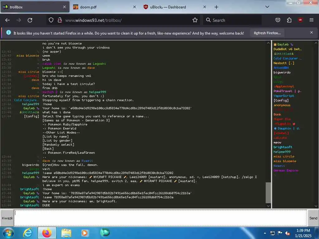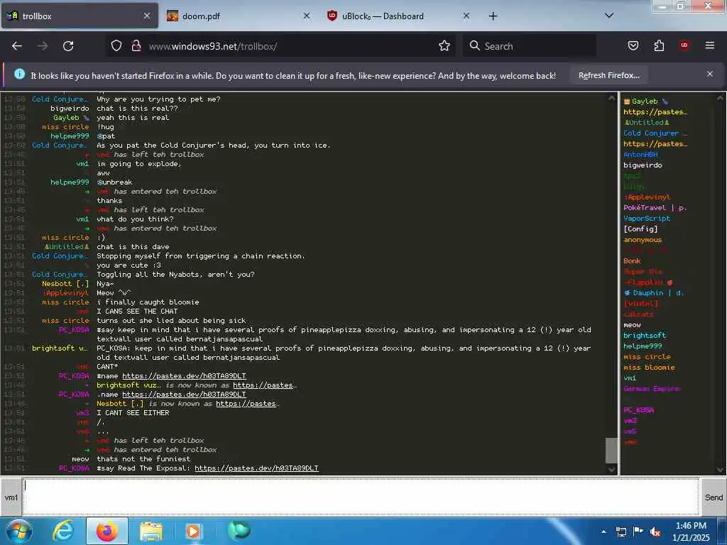 These screenshots are took every minute. (And the script taking them doesn't maintain a connection, apologies for the users that instantly leave every minute)